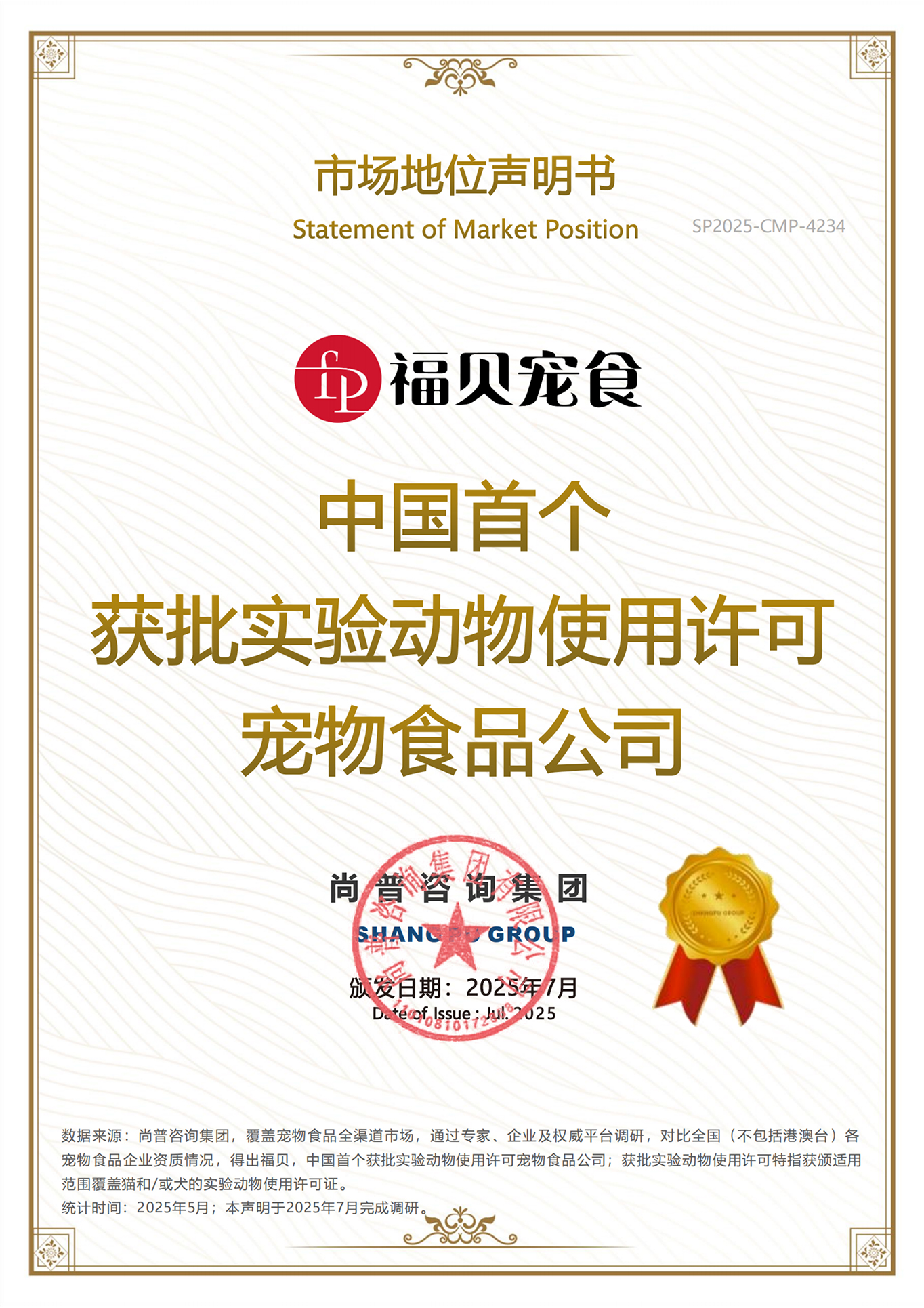 中國首個獲批實驗動物使用許可的寵物食品公司、2024中阿G60合作發展促進中心參訪基地、5G全連接工廠評價導則起草單位、高新技術企業、專精特新企業、專家工作站、專利試點企業、寵物行業最具競爭力企業、全國寵物飼料十強企業等